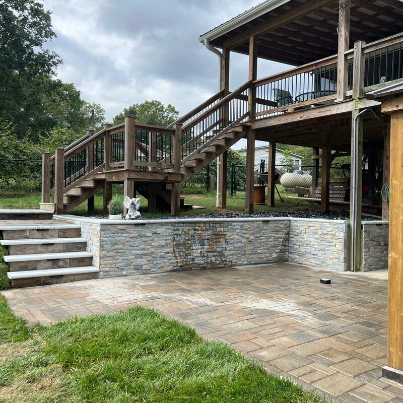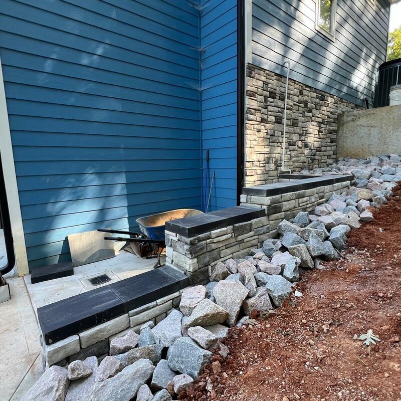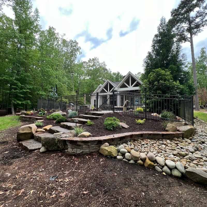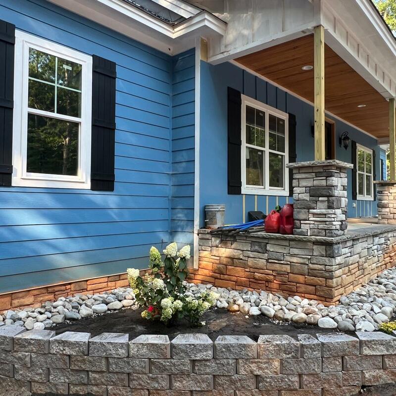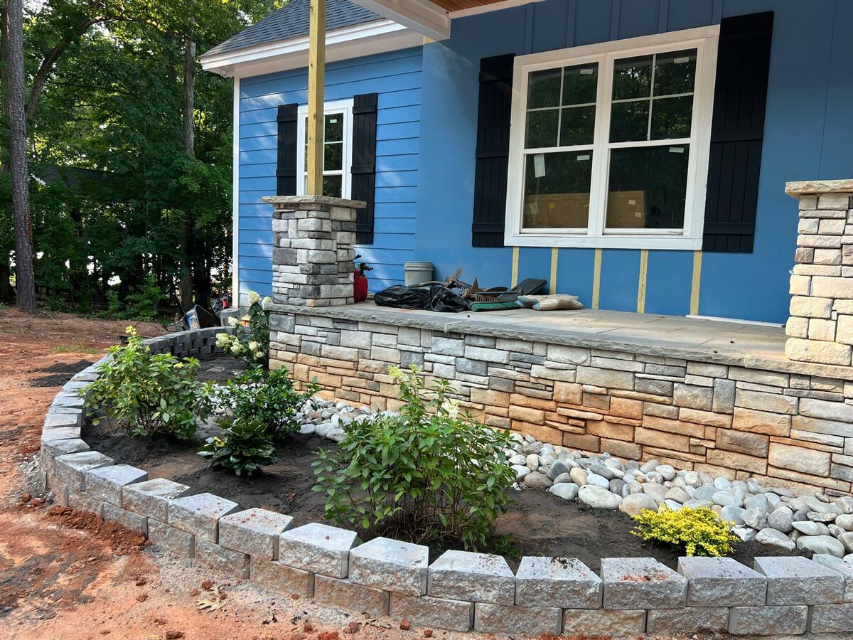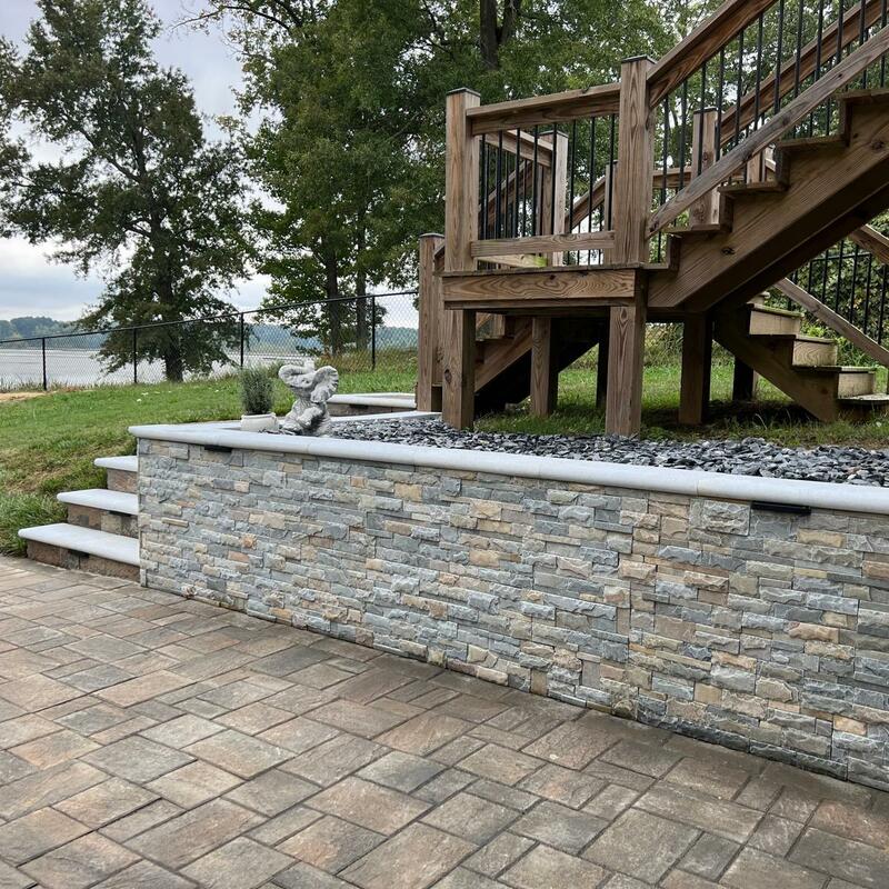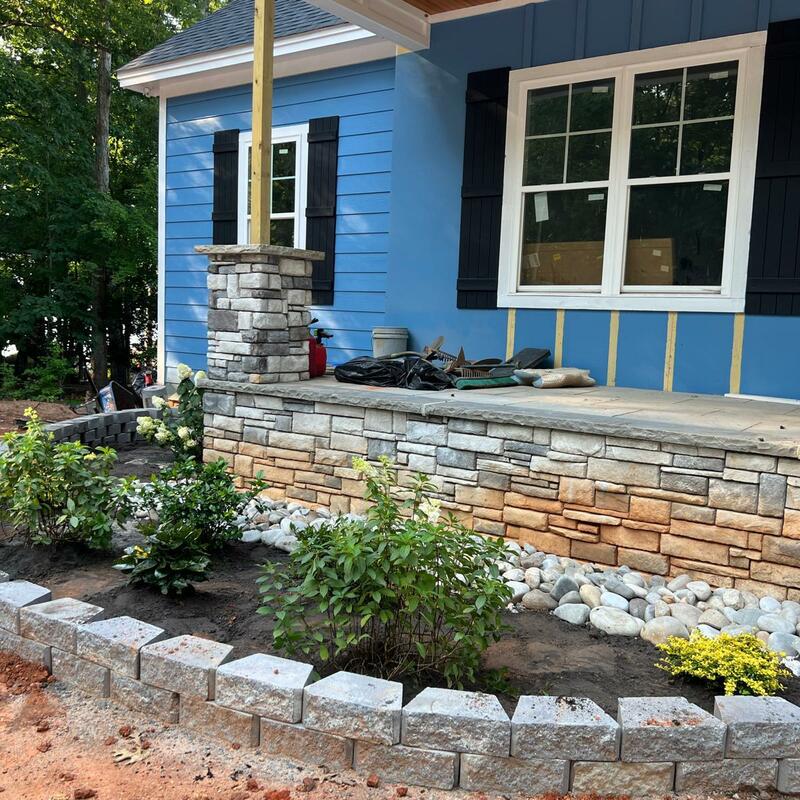 While our main focus is hardscaping, we offer landscaping services such as mulching, planting, and lawn maintenance to complement our stonework and paver installations.